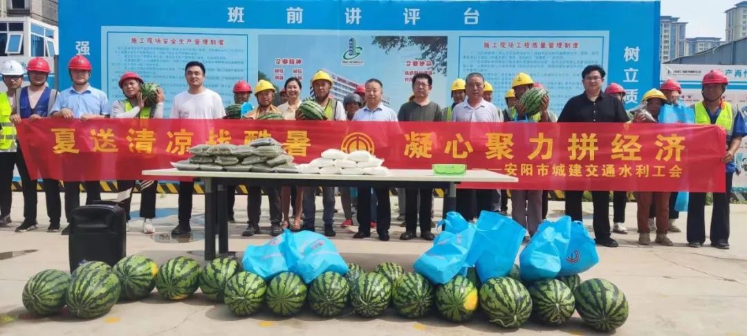 夏日的高溫天氣考驗(yàn)著堅(jiān)守并奮戰(zhàn)在生產(chǎn)一線的干部職工的同時,也牽動著集團(tuán)公司領(lǐng)導(dǎo)們的心,為切實(shí)做好防暑降溫工作,確保一線職工安全度夏,促進(jìn)集團(tuán)公司安全生產(chǎn),由公司工會牽頭,組織公司安全部、工程部,滿載綠豆、白糖、西瓜,毛巾、水杯等慰問品深入到一線各項(xiàng)目部和戶外作業(yè)的分公司,開展致敬勞動者“防暑降溫送關(guān)愛 心系員工送清涼”慰問活動,一份清涼,一份關(guān)懷,一個西瓜, 一份暖心。